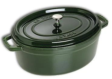 Cocotte ovale en fonte émaillée Staub basilic de 29 cm.