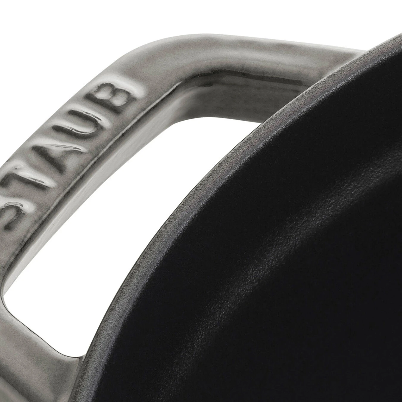 Cette cocotte ronde en fonte Ă©maillĂ©e STAUB Gris graphite de 18cm est adaptĂ©e pour 1 Ă 2 personnes, pour prĂ©parer des plats mijotĂ©s, des rĂŽtis, de la volaille et mĂȘme du pain ! Compatible tous feux et four, elle peut Ă©galement sâutiliser sur induction.